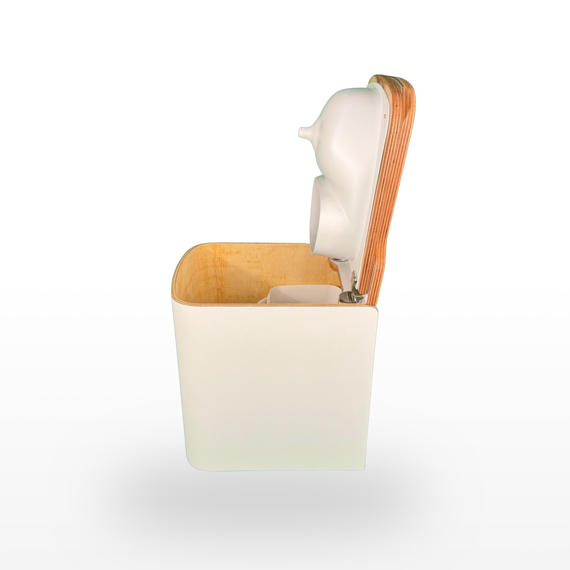 - Kompakte Trockentrenntoilette mit je 10 Liter Urin- und Feststoffbehälter